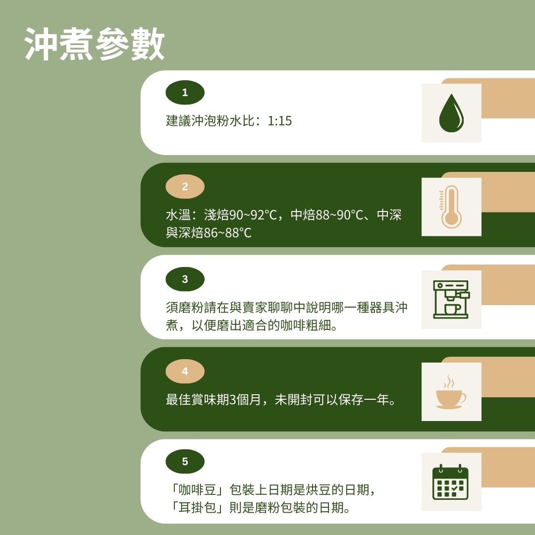 4. 「咖啡豆」包裝上日期是烘豆的日期,「耳掛包」則是磨粉包裝的日期。